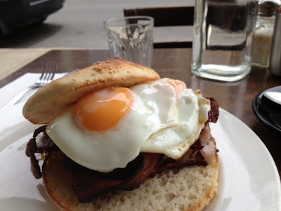 My morning comfort food in Sydney, bacon and crispy bacon roll.